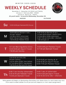 Rental equipment is available for $100 per player for the season. Equipment rental is staffed by volunteers and is available through appointment only.